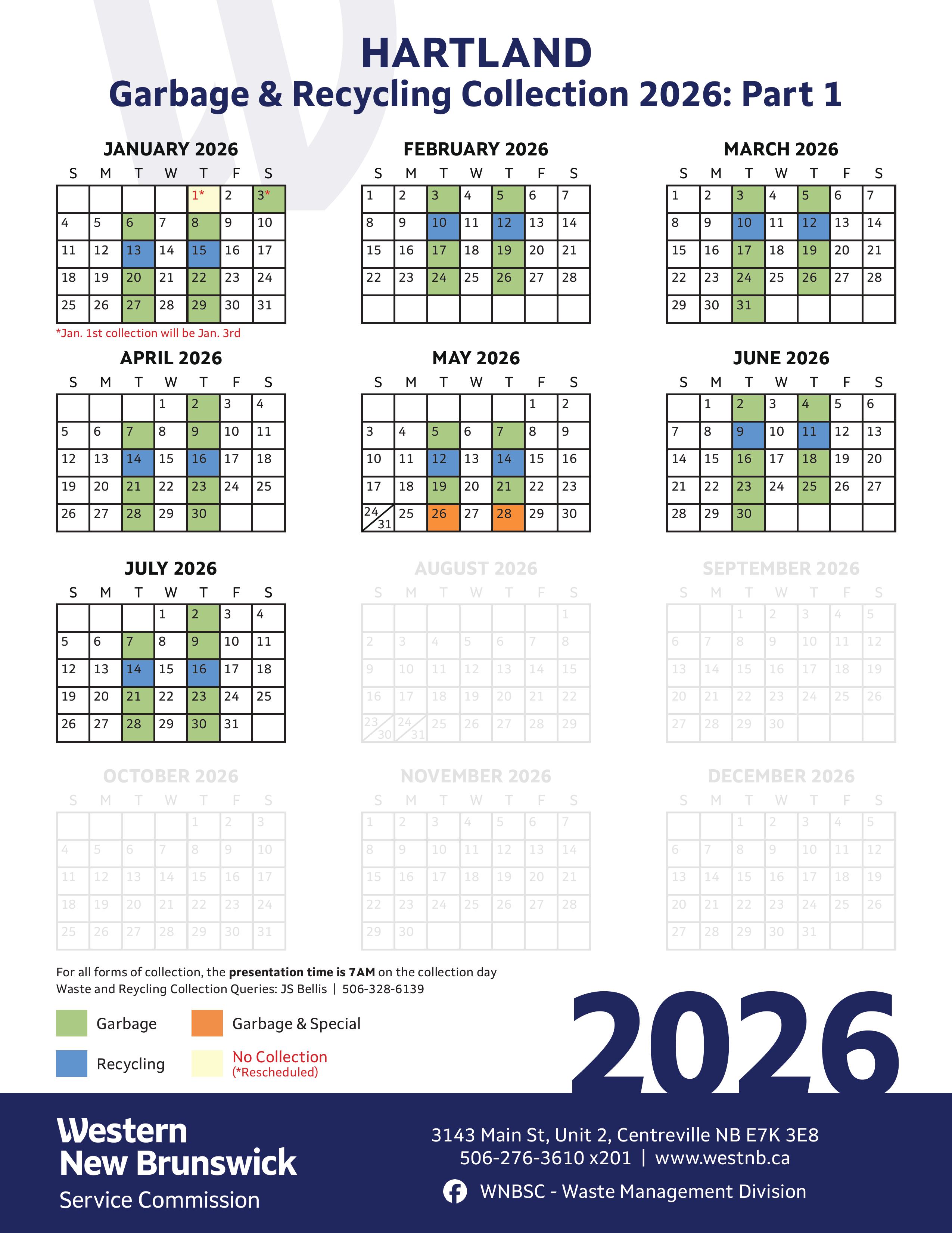 Garbage WILL NOT BE PICKED UP ON RECYCLING WEEK for anywhere within the municipality of Hartland.
